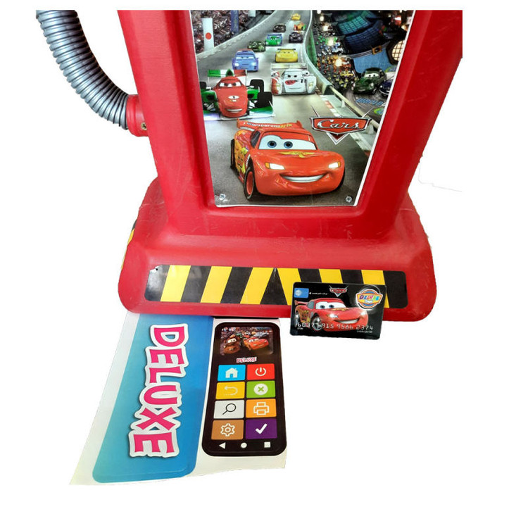 یک پمپ بنزین با کیفیت برای سرگرمی کودکان ایران زمین ، دارای نازل برای زدن بنزین ، دارای شلنگ خرطومی بلند ، دارای برچسب اضافی برای برند و کارت خوان، دارای کارت عابر بانک ، دستگاه کارت خوان چسبیده به پمپ بنزین است