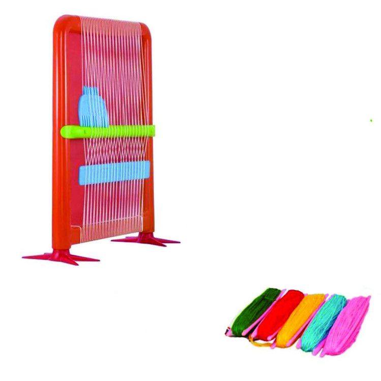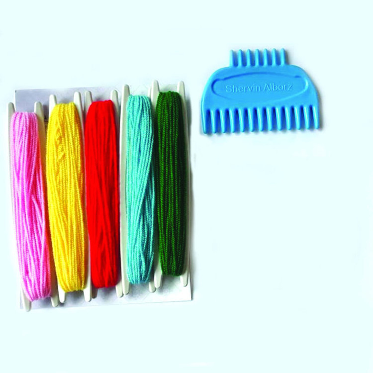 یک عدد چهارچوب بافندگی همراه با یک عدد شانه بافت یک عدد پک نخ 5 رنگ در بسته بندی با پلاستیک حباب دار
