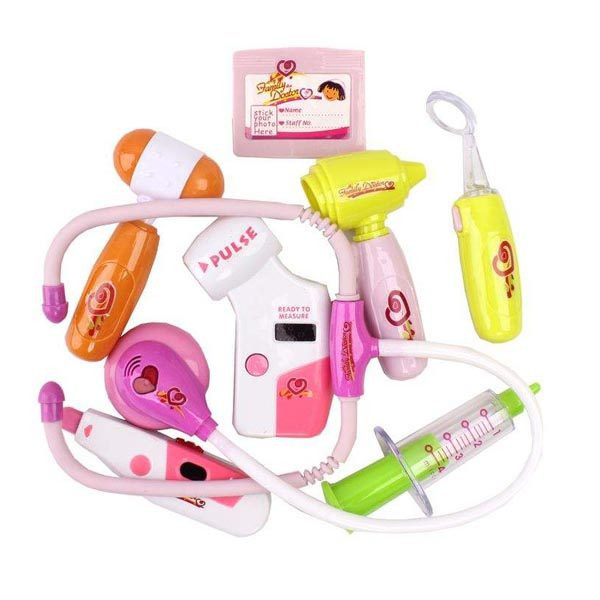 این مجموعه شامل سرنگ اسباببازی، آینهی دندانپزشکی، کارت کارکنان پزشکی. چکش پزشکی، دماسنج، گوشی طبی فشارسنج و گوشبین است. وسایل این مجموعه دارای دکمههایی هستند که با فشار دادن آنها اسباببازی از خود آهنگ و نور ساطع میکند این اسباببازی مناسب کودکان بالای 3 سال است.