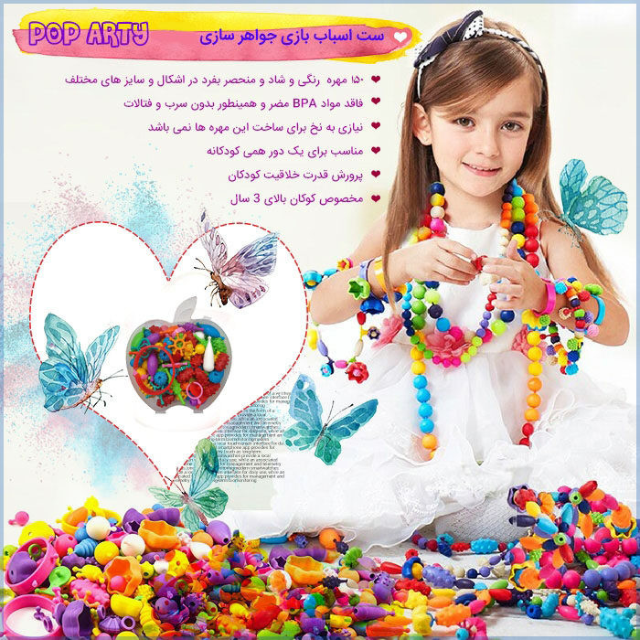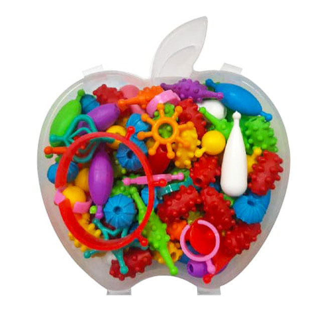 دخترخانمها دوست دارید از گردنبند ساختهی دست خود در مهمانی استفاده کنید؟ میتوانید علاوه بر گردنبند خاص دستبند و انگشتر کاملاً هماهنگ و زیبا و مناسب سلیقهی خود بسازید.«بسته آموزشی ساخت دستبند و گردنبند مدل 150 عددی» یک هدیهی مناسب برای کودکان بالای 3 سال و عاشق جواهرات است. این مهرهها به راحتی و بدون نخ بهم وصل و از هم جدا می شوند. دختر بچهها عاشق خلق و طراحی هستند و آنها از اینکه با ذوق هنری خودشان میتوانند دستبند و گردنبند و انگشترهای زیبایی بسازند، کلی لذت میبرند. کودک می تواند هر چند بار که خواست طرحها را از نو بسازد و هیچ محدودیت در استفاده و ساختن ندارد. اگر دنبال وسیلهای برای پرورش ذوق هنری کودک خود هستید این اسباب بازی زینتی و شاد را برای دختر بچهها توصیه میکنیم.این محصول از 150 تکه پلاستیکهای باکیفیت ساختهشده است و یک وسیلهی مناسب برای افزایش هماهنگی میان چشم و دست بچههاست و به دستان کوچک آنها کمک میکند تا وسایل کوچک و فانتزی برای خود بسازند. این مجموعه در یک بسته زیبا به شکل سیب و در ابعاد 11x12 سانتیمتر قرار گرفته است.