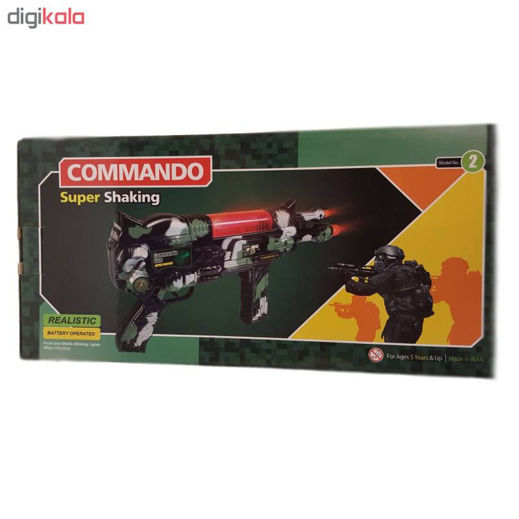 لوله تفنگ رو به جلو عقب متحرک میباشد.قسمت های قرمز تفنگ روشن شده و صدای مسلسل میدهد