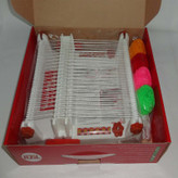 اقلام همراه : 4 نخ رنگی-دستگاه بافندگی-شانه-5 عدد نخ کش