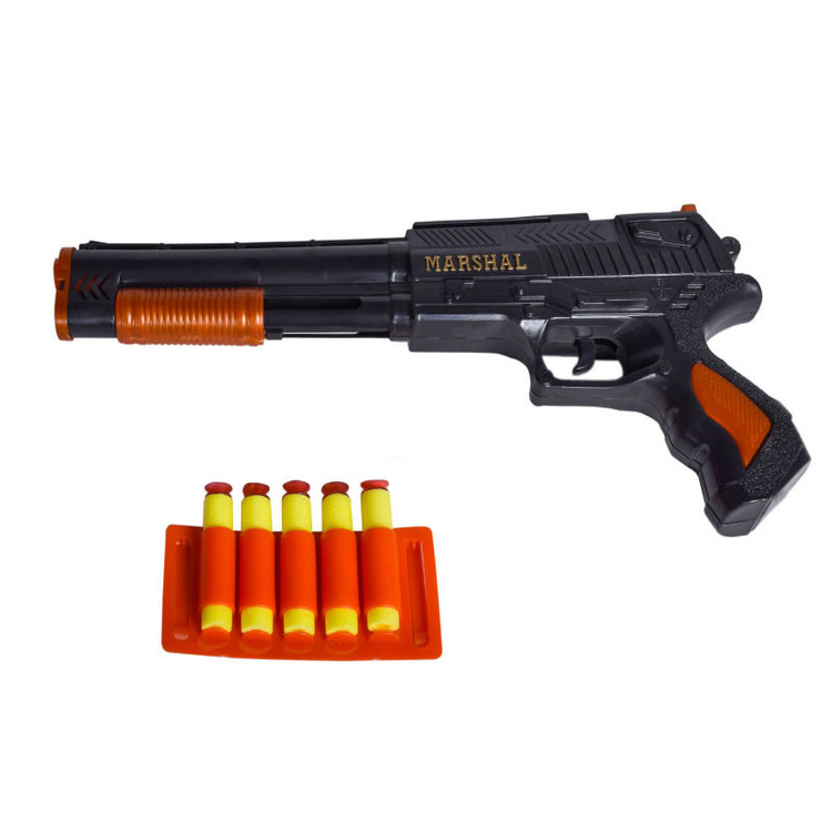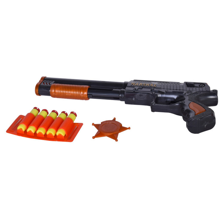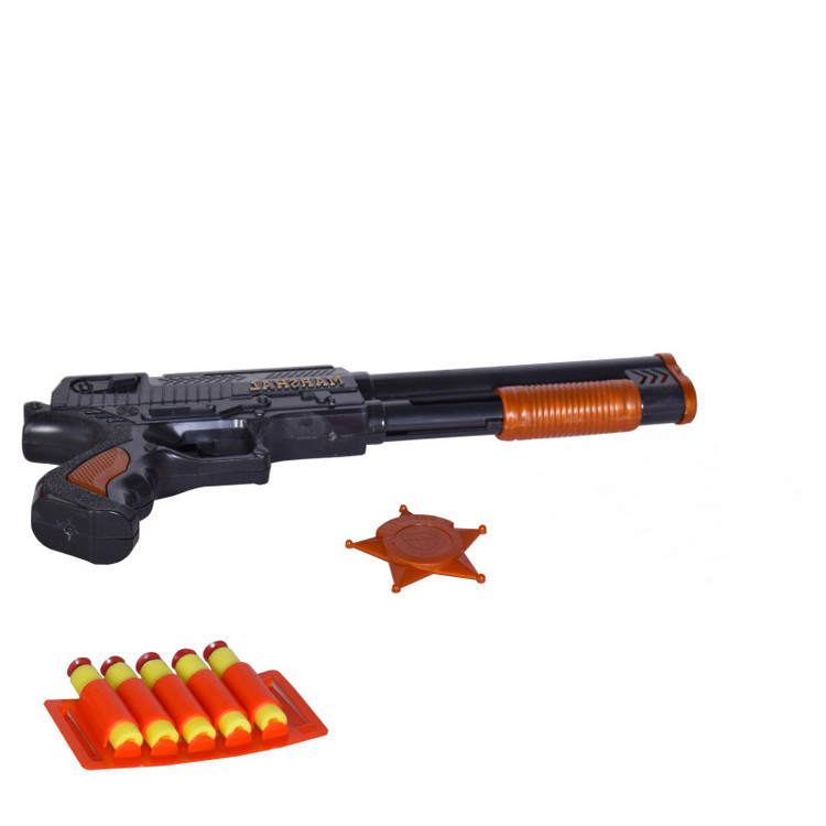 تفنگ بازی کد 6018 ، یکی از مدل های بسیار جذاب در میان اسباب بازی های کودکان میباشد. این تنفگ با بهره گیری از بهترین نوع مواد اولیه شامل پلاستیک مقاوم ( مواد نو ) و 5 عدد تیر و یک نشان پلیس به یک اسباب بازی مناسب برای کودکان تبدیل شده است.